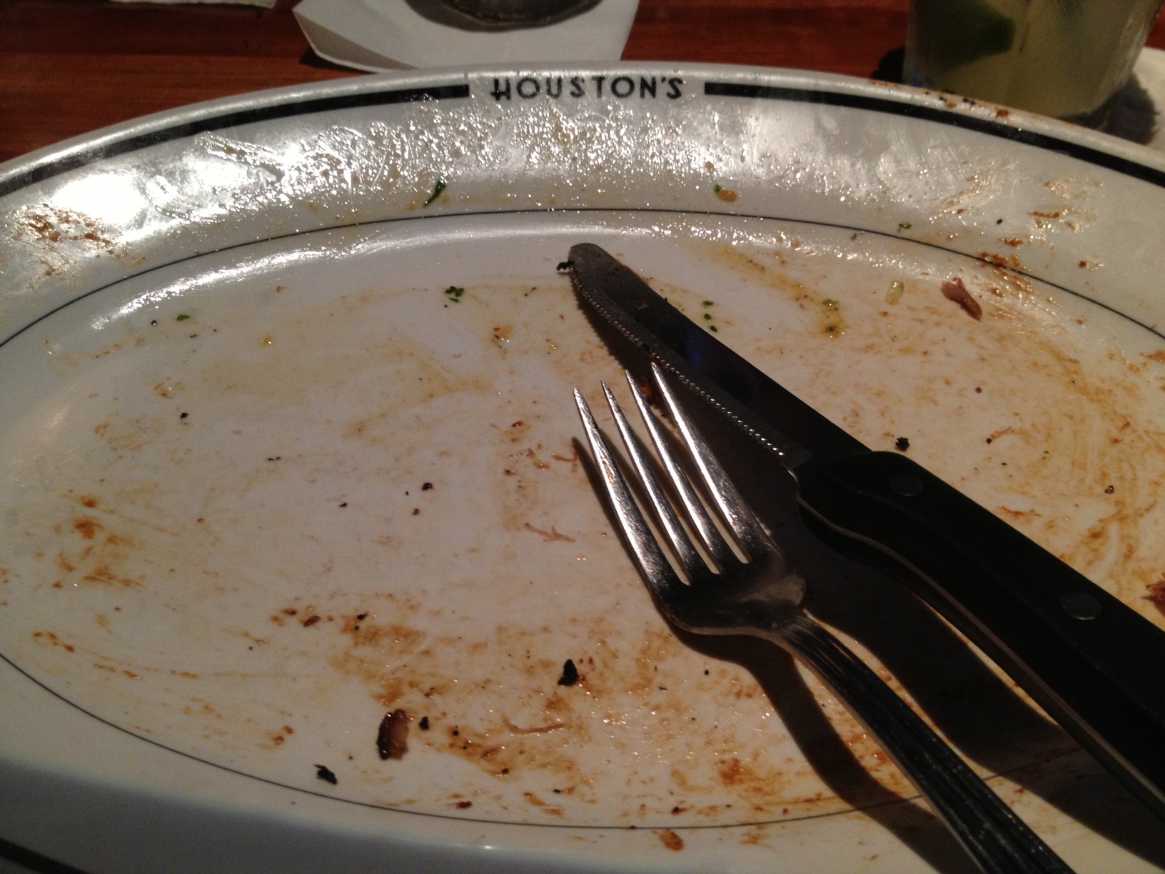 Finally came the dessert: a piece of key lime pie with whipped cream. Mmmmmm, dessert. My family and I have been big key lime pie fans for a long time, and a few years back my grandmother would order nothing else for dessert. So to put it plain and simply, we know what we like in a key lime pie. Houston’s is one of the better key lime pies around the area, comparing to Max’s Grille’s key lime pie. Both places make it in-house, and both come out tart yet sweet and rich, and with a delicious graham cracker crust. This was perfect to end the meal with, but a smaller piece would have sufficed.