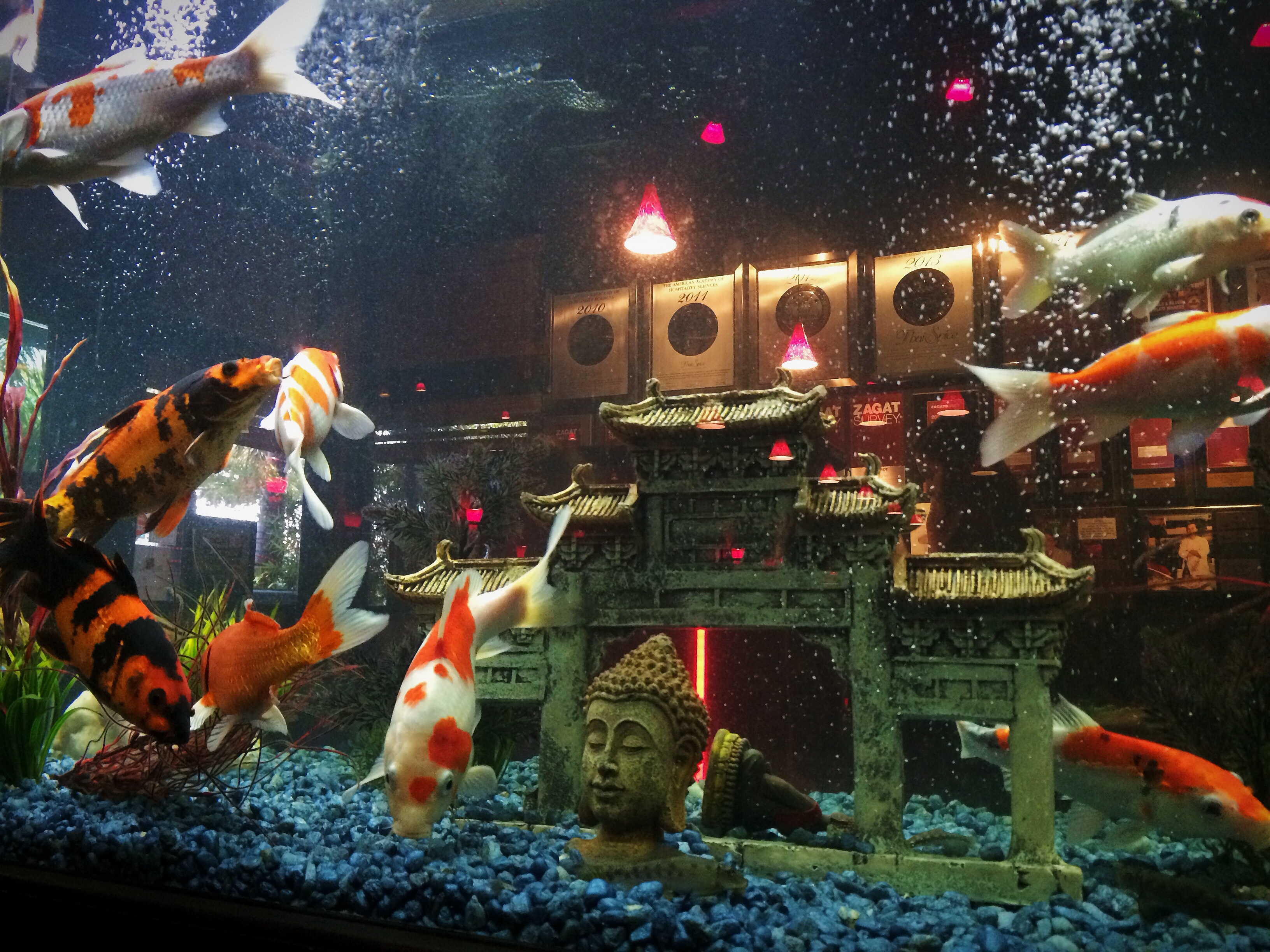As per usual with these gems, my mother and I were together(she’s the best). We walked into a dimly lit space with red and black and white as the main color scheme, very zen-like décor and atmosphere. The first thing you saw was a big fish tank in the front by the hostess stand.