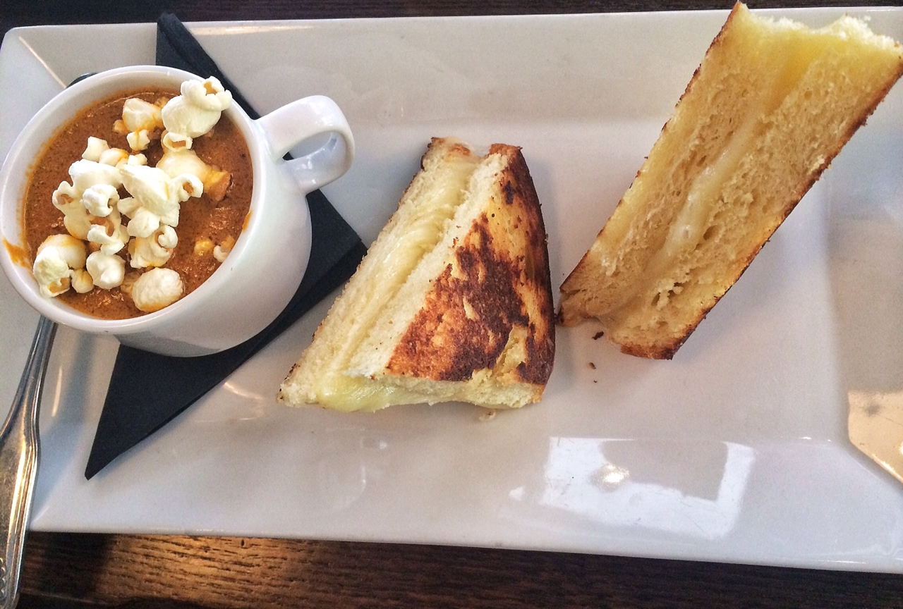 Today, despite the initial desire of wanting to go with a nice, healthy, refreshing salad, I went with a deliciously tasty, super satisfying Truffle Grilled Cheese + Tomato Bisque.