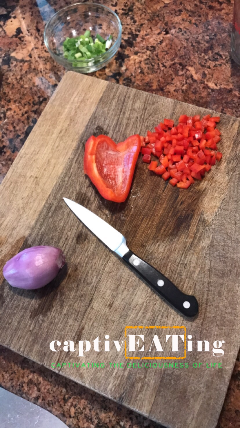 – 1/2 bell pepper, finely sliced and diced any color you like!