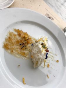 While we enjoyed our aperitifs, a house-made specialty ricotta cheese with honey and flowers was brought out for us to enjoy. The subtle flavors of the ricotta and honey were a great match for each other.