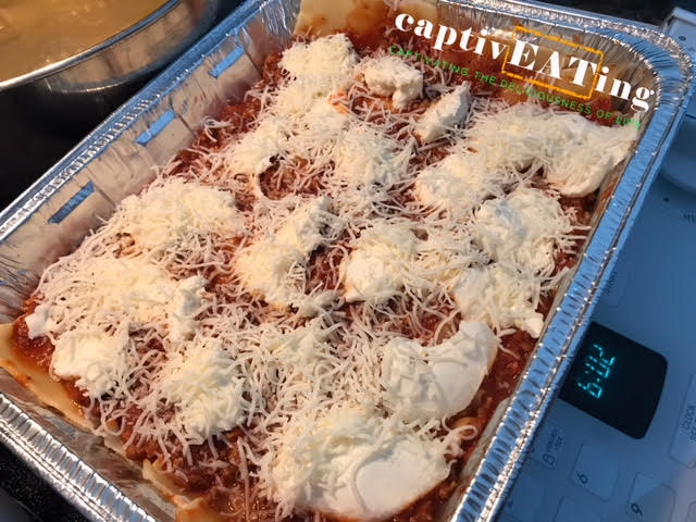 2 boxes lasagna pasta (I used about 1.5 boxes, and used tongs to grab each piece of pasta out of the water it is cooked in and then layer in the lasagna try)